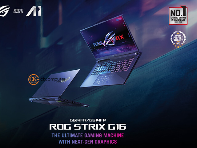 Asus ROG dikembangkan secara khusus unuk Gamers dan Designers. Sistem pendingin canggih, GeForce & Processor wahid. Check katalog dan hubungi Team sales untuk bantuan lebih lanjut.CK Computer Exclusive Offer