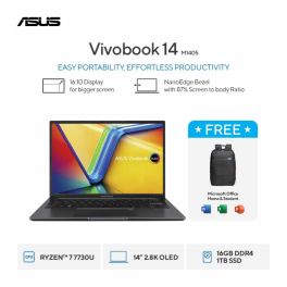 *Harga Hubungi CSAsus Vivobook 14 M1405YA-OLEDS711 AMD Ryzen 7 7730U Processor : AMD Ryzen™ 7 7730U Mobile Processor 2.0GHz (8-core/16-thread, 16MB cache, up to 4.5 GHz max boost) Display : 14.0-inch, 2.8K (2880 x 1800) OLED 16:10 aspect ratio, 90Hz refresh rate,600nits HDR peak brightness, 100% DCI-P3 color gamut, Glossy display (Screen-to-body ratio)86%, PANTONE Validated Memory :… selengkapnya