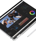 - Display : 35.6 cm (14″) diagonal, 2.8K (2880 x 1800), OLED, multitouch-enabled, 48-120 Hz, 0.2 ms response time, UWVA, edge-to-edge glass, micro-edge, Corning® Gorilla® Glass NBT™, Low Blue Light, SDR 400 nits, HDR 500 nits, 100% DCI-P3, TOUCH X360